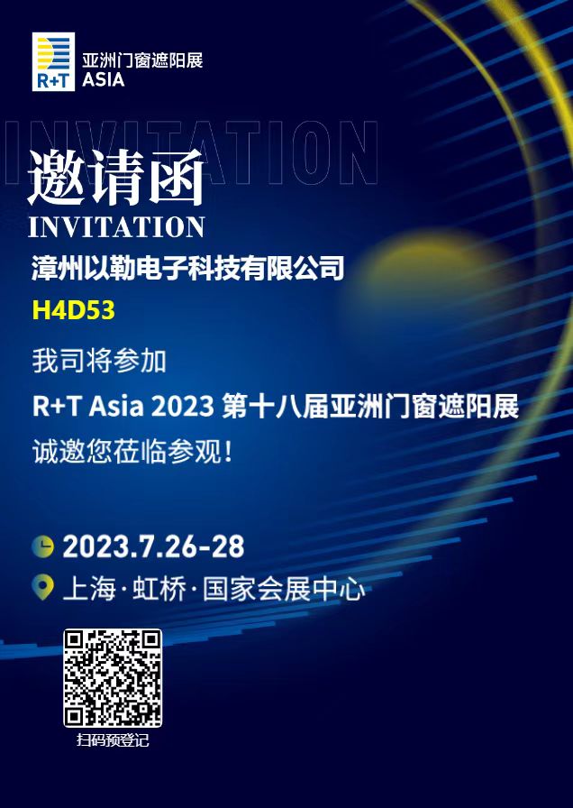 漳州以勒電子科技有限公司( YILE )將參加第18屆 亞洲門窗遮陽展(2023),誠摯期待您的蒞臨指導(dǎo)!