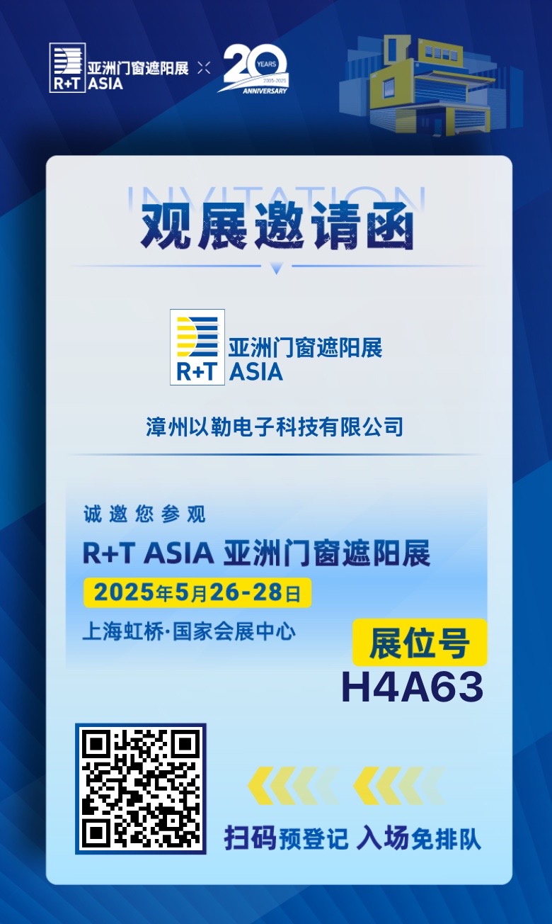 漳州以勒電子科技有限公司( YILE )將參加第20屆 亞洲門窗遮陽展(2025),誠摯期待您的蒞臨指導(dǎo)!