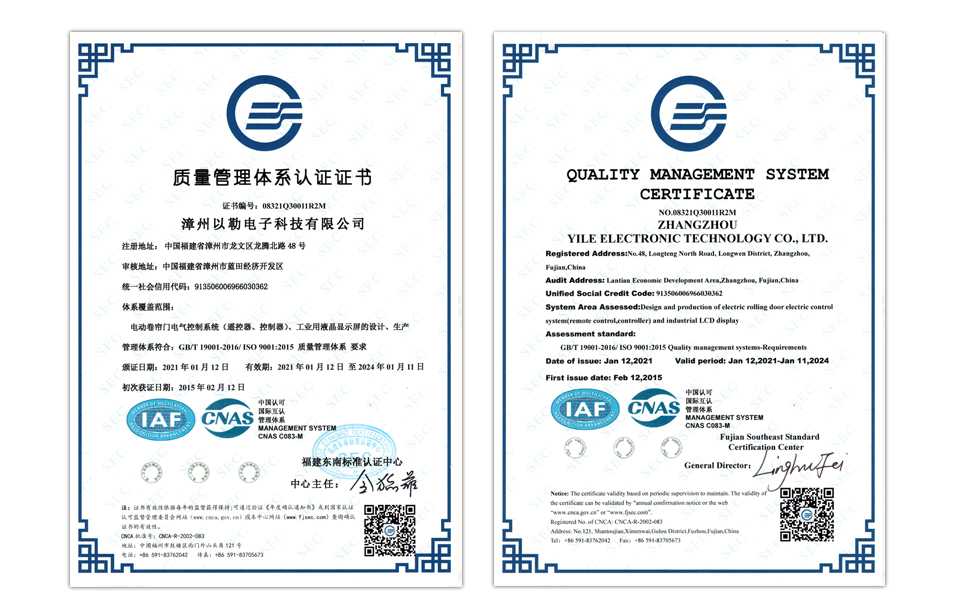 一、質(zhì)量管理體系認(rèn)證證書
