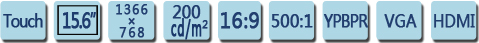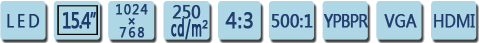 輸入信號:RCA Video×2,RCA Audio×1,VGA×1,HDMI×1,YPBPR×1